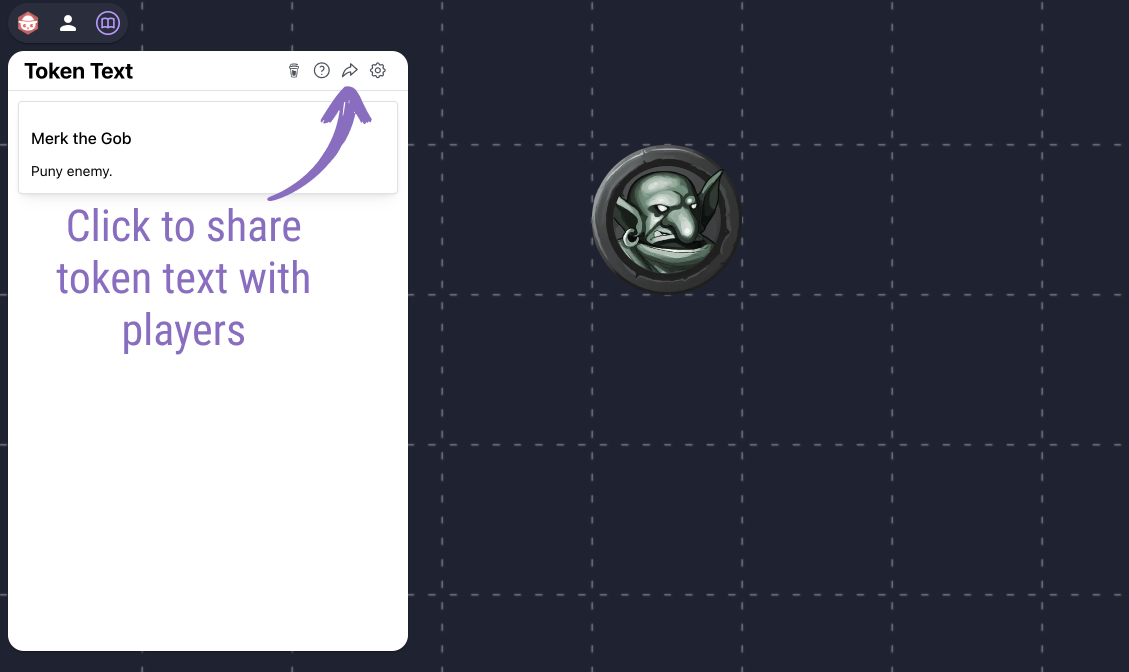 You can share your settings and custom token text with players by clicking the share button. Players need to be in your Owlbear Rodeo room to get updates.