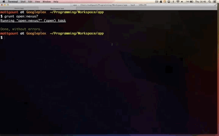 We also make use of some simple, but helpful configurations to tasks like grunt-contrib-watch for syncronised cross-device livereloading.