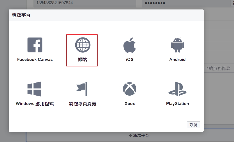 請先到 facebook-developer,點右上角的 我的應用程式,選 新增應用程式,