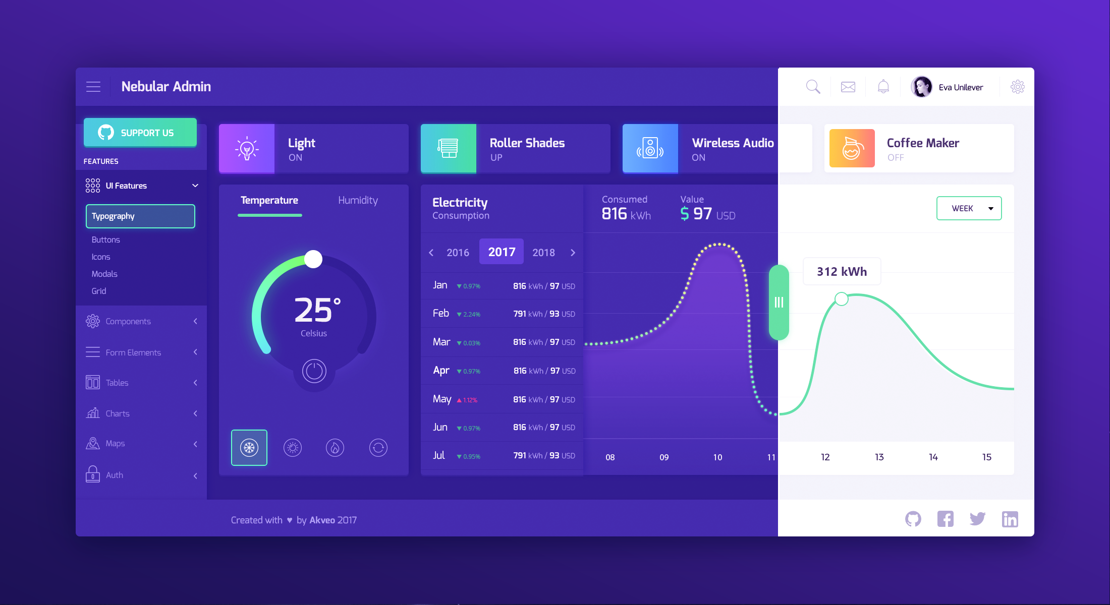 Made with ❤️ by Akveo team. Follow us on Twitter to get the latest news first! We're always happy to receive your feedback!