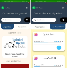 An application based learning platform where users can learn the most important and difficult part of C.S. field i.e. the “Algorithms”. Via our platform the user will understand the basic logic and reasoning behind the algo and also to implement it in various major languages such as JAVA, Python, C, C++ etc.