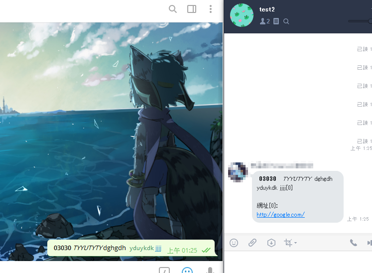 - 註4:支援 TG → Line 傳送文字格式(粗體、斜體、刪除線、程式碼、連結) 。