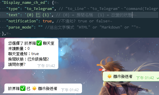 - Telegram "回覆訊息"格式更改,以美化 Line 那邊的排版。