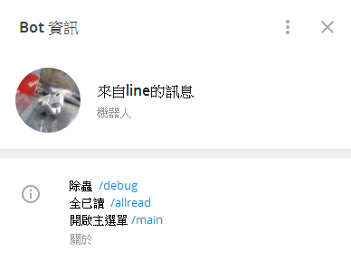 - 現在在 Telegram 中已能知道 Line_bot 被踢除、加入的狀況。