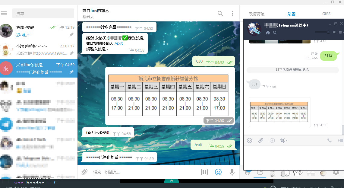- 註3:目前不支援 TG 的動圖。 支援Line動圖傳至 TG。 TG 傳送貼圖至Line會先去我的伺服器轉檔,若覺不妥可自架。
