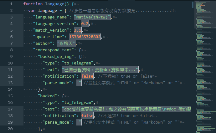 - 新增自訂語言包功能,對於不習慣我的bot講話風格者可自訂自己的bot風格。