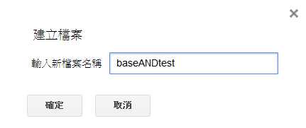 複製完後按下左上角的 "檔案" -> "新增" -> "指令碼檔案" -> 輸入你要的名稱(推薦叫"baseANDtest") -> 將"baseANDtest.gs"內容複製上去並填上資訊(註一)