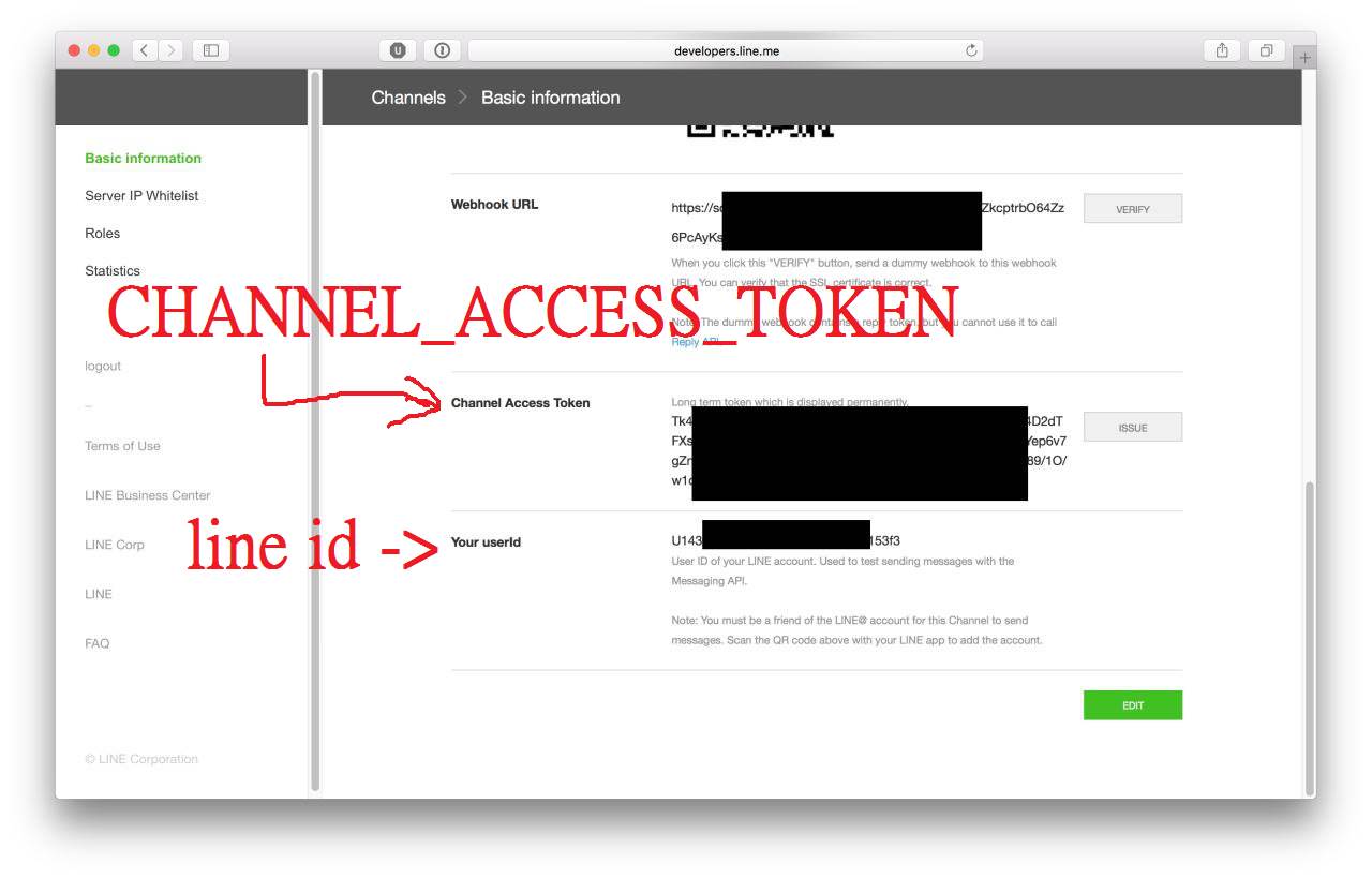 - 將他給你的網址複製起來,並設定Telegram和Line的bot Post到該網址。(註三)