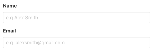 <FormField label="Name" type="text" placeholder="e.g Alex Smith" />