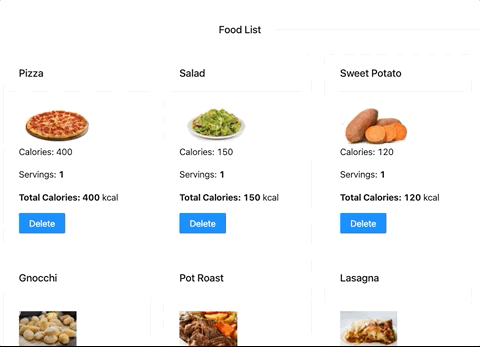 Hint: To update the food array that is in the state of the App component, you will need to pass a function through the props.