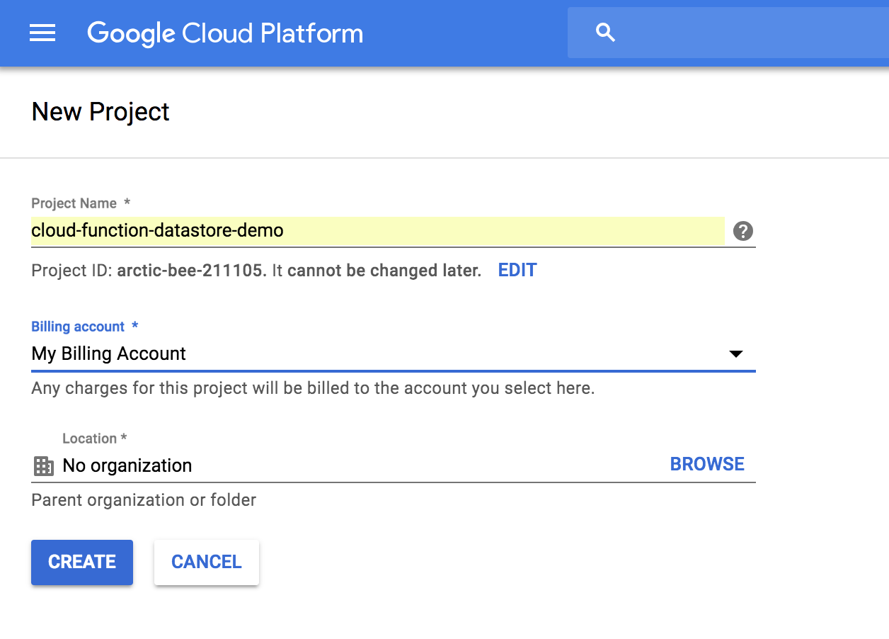 index.js, which is the function we will later on deploy on cloud function.datastore-credential.json, replace this file with the credential you obtained.README.mdpackage.json, within it, the cloud datastore nodeJS library, which is installed in the file already.- Others are the cloud datastore nodeJS library.