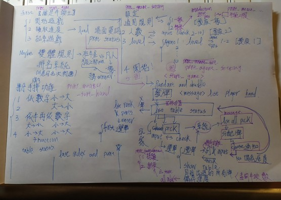 int32_t player, int32_t row);- input:牌面、玩家點數、玩家序號、手牌、數值 →根據數值找到「該放的列」,若小於所有列的數值則回傳-1 →若該列已有五張牌,則以使用者的牌作為排頭,並讓該使用者吃掉整排 →其餘則直接加一張牌在列尾巴